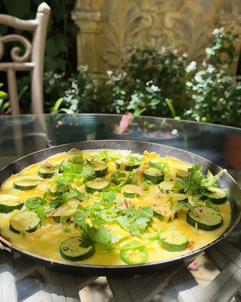 Open-Faced Zucchini, Cilantro, and Cheese Omelet