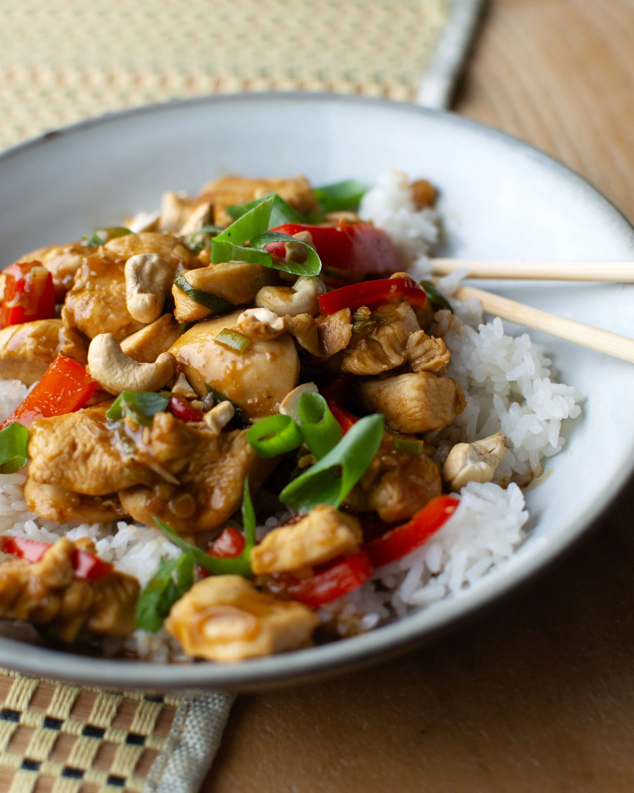 Quick and easy to prepare, this dish is perfect for busy weeknights. Chicken, crunchy cashews, and red peppers all tossed in a glossy, savoury sauce. Pair it with steamed jasmine rice for a meal that’s wholesome, flavorful, and irresistibly satisfying.