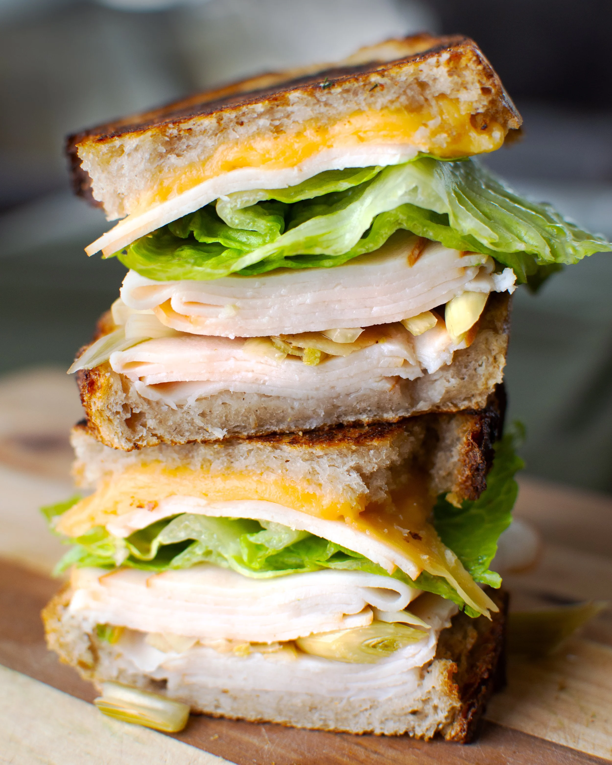A not-so-boring turkey sandwich is all about unique garnishes. Pickled fennel is the star of the sandwich, adding a nice bite, delicious tang, and slight sweetness. This is the perfect quick lunch to make to bring to work when served cold or make it even tastier served warm with melted cheese.