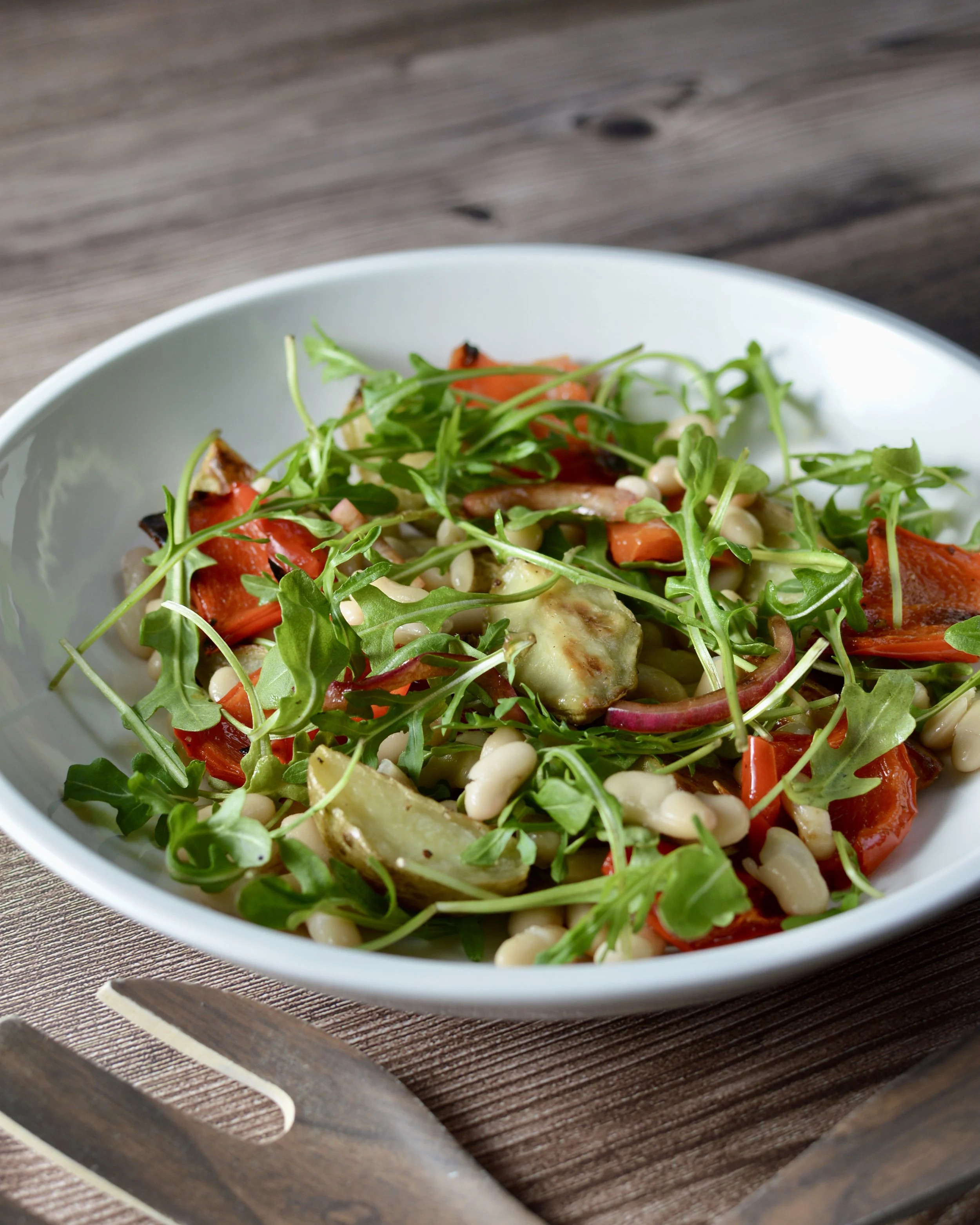 This vibrant salad combines tender baby potatoes, roasted red peppers, tangy balsamic onions, creamy white kidney beans, and fresh arugula. It's a satisfying salad that's perfect as a light lunch or a refreshing side dish for any meal. I love salads that combine cooked veggies as they make the salad more satisfying and easy to digest as in Leak and Pita Chip Salad, Herby Quinoa Salad or Charred Eggplant, Pepper and Chickpea Salad.
