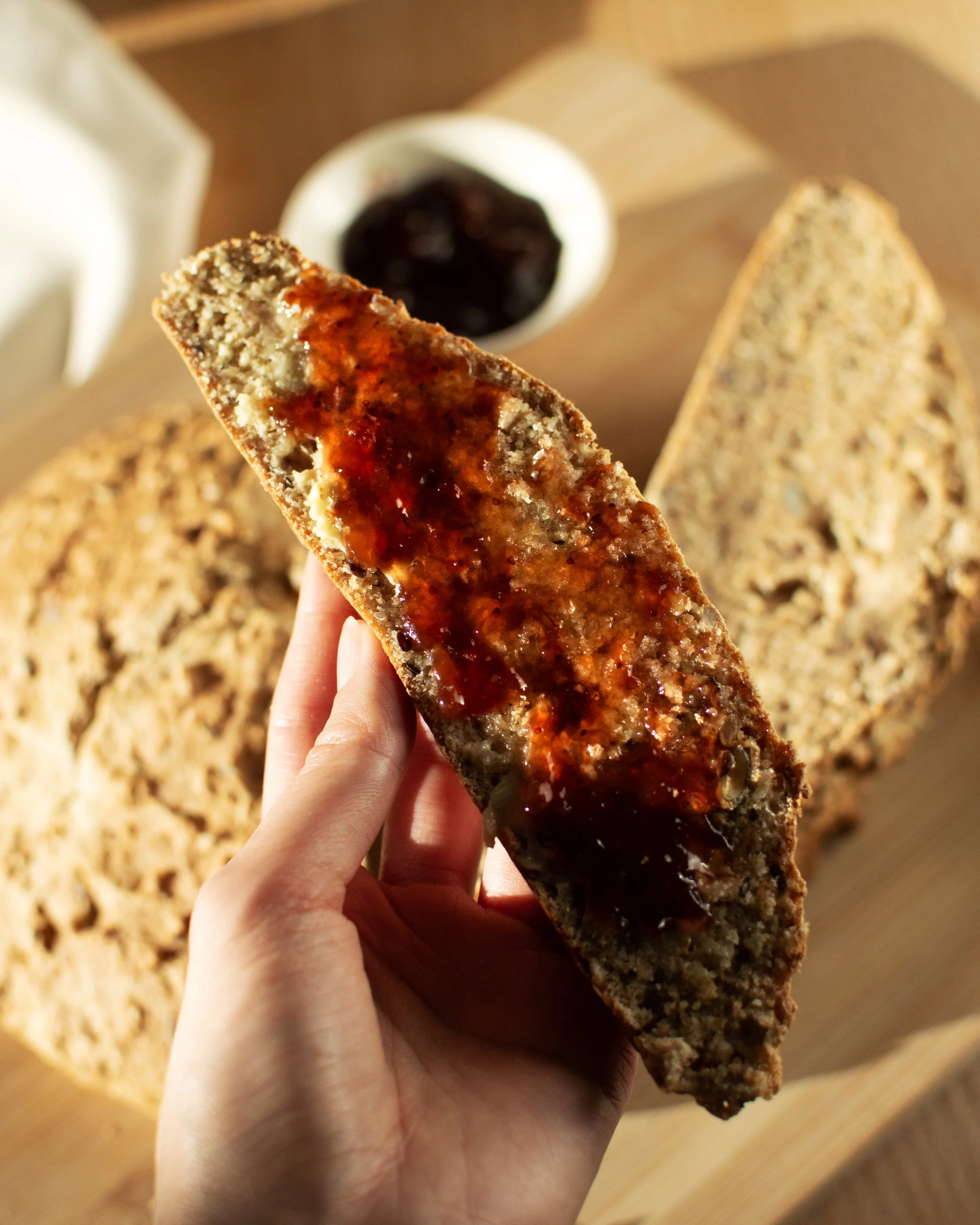 The quickest and easiest bread to make is Irish soda bread. No kneading the dough or waiting for it to rise. Ireland’s climate lends itself to growing softer wheats which led to the popularity of baking breads without yeast. This is a healthy multigrain loaf with mixed seeds!